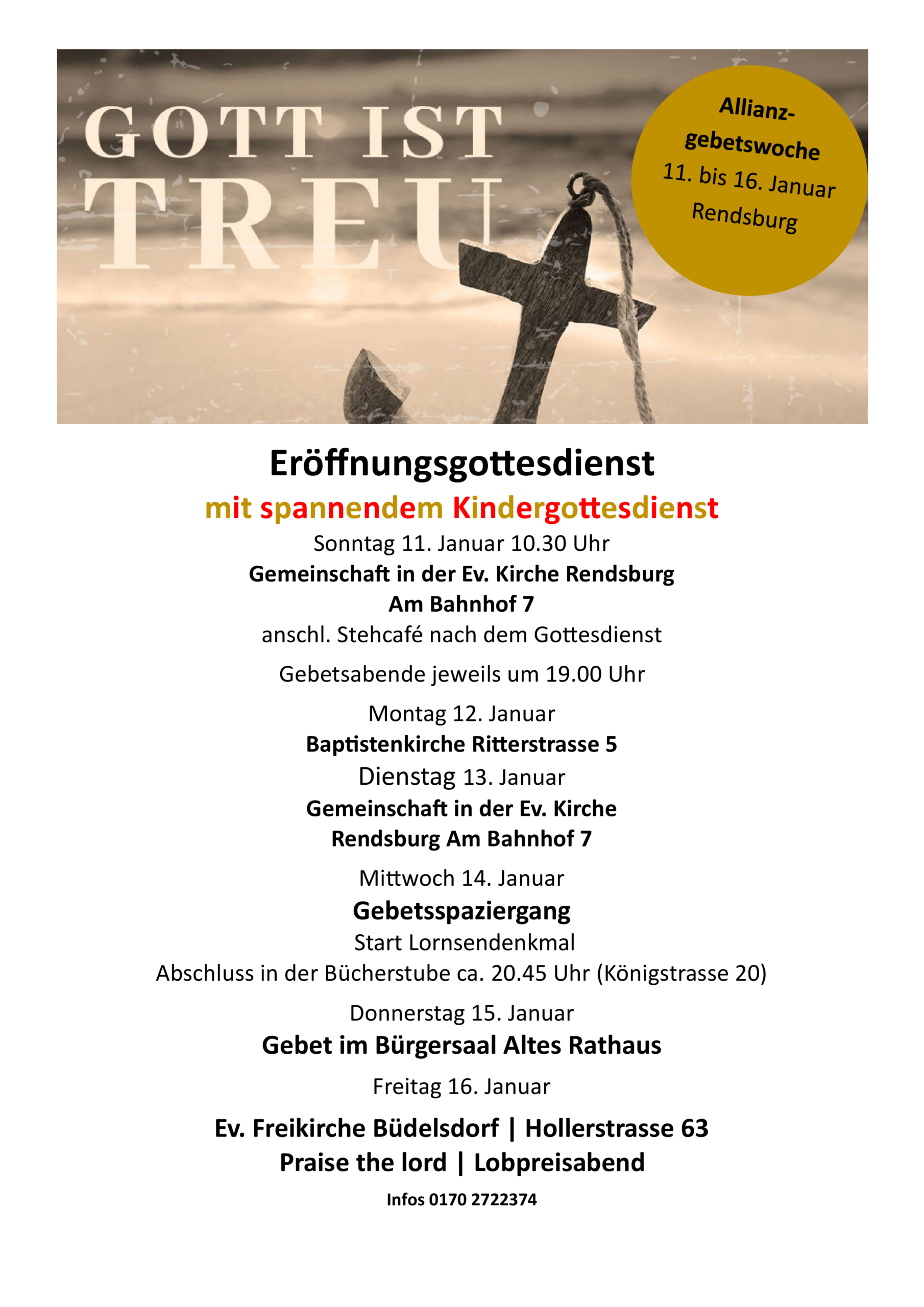 Was erwartet Dich? Zuerst einmal eine ziemlich bunte Gruppe unterschiedlichster Menschen! Wir setzen nicht auf Gleichmacherei, denn jeder hat seinen ganz persönlichen Zugang und Weg mit Gott. Es gibt Menschen die unsere Kirche besuchen, weil es richtig gut tut, in dieser unübersichtlichen Welt ein paar Impulse oder etwas Orientierung zu finden. Andere haben hier ‚ihren‘ Platz entdeckt, an dem sie wachsen und sich entwickeln möchten. Nicht wenige nutzen die Baptistenkirche Rendsburg, um heil zu werden: Wer einfach zuviel Schrott erlebt hat, freut sich über einen Ort, an dem einfach jeder sein darf, um nach herausfordernden Lebensphasen wieder Atem zu holen. Es gibt auch Menschen, die es genießen, in Sachen Gottesdienst und Anbetung ermutigend an die Hand genommen zu werden. All dies und vieles mehr ist in der Baptistenkirche Rendsburg möglich – am besten, Du kommst mal längs und schnupperst einfach rein. Eine gute Gelegenheit ist der Gottesdienst am Sonntag Vormittag. Herzlich willkommen.